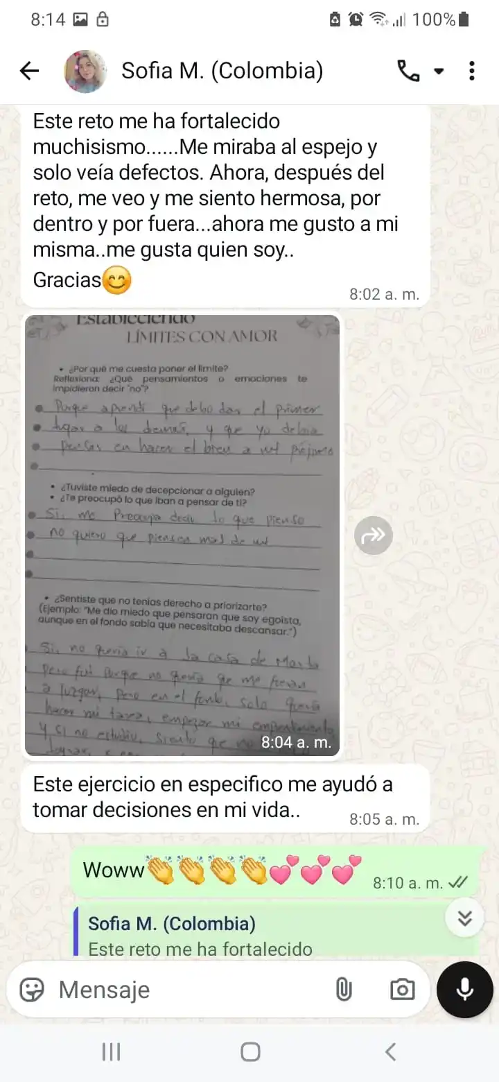 El reto es una herramienta de apoyo para la autoestima y el amor propio, pero no sustituye la terapia profesional. Si tienes problemas de salud mental, consulta a un profesional antes de participar.